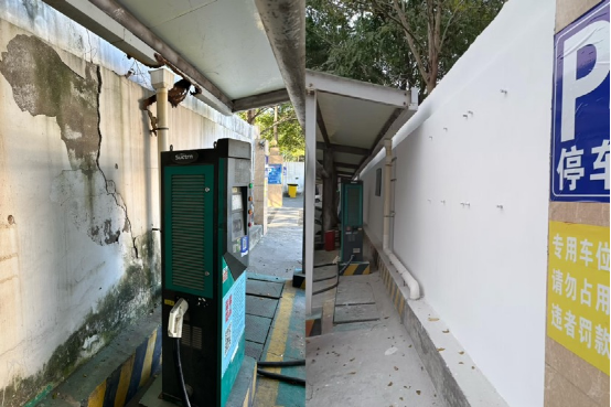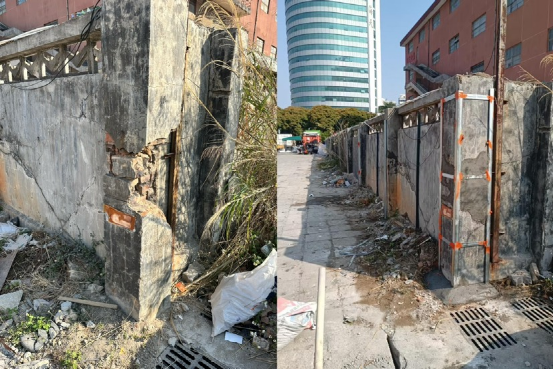 ③充電站圍墻破裂修補(bǔ)前 充電站圍墻破裂修補(bǔ)后