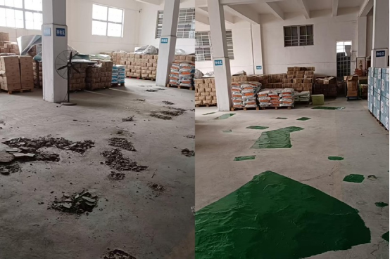 ②庫(kù)區(qū)地面破損修補(bǔ)前 庫(kù)區(qū)地面破損修補(bǔ)后